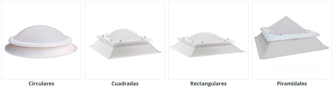 La propia cúpula de la claraboya puede estar fabricada también de diversos materiales, cada uno con prestaciones específicas: